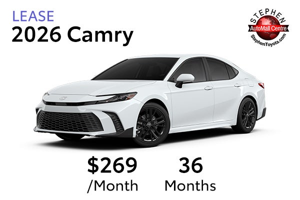 Qualified lessees can lease a new 2026 Camry 4WD 4Dr. Sedan LE Hybrid CVT Model 2552 for $269 per month for 36 months with $3,999 Due At Signing. Based on 10,000 miles/yr. Security Deposit waived. Lease excludes tax, title, license, registration fees, acquisition fee of $750, and dealer options and charges.