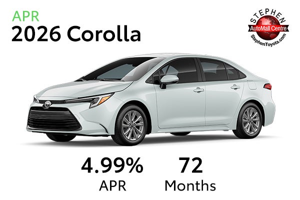 Qualified buyers can finance a new 2026 Corolla at 4.99% APR for 72 Months.