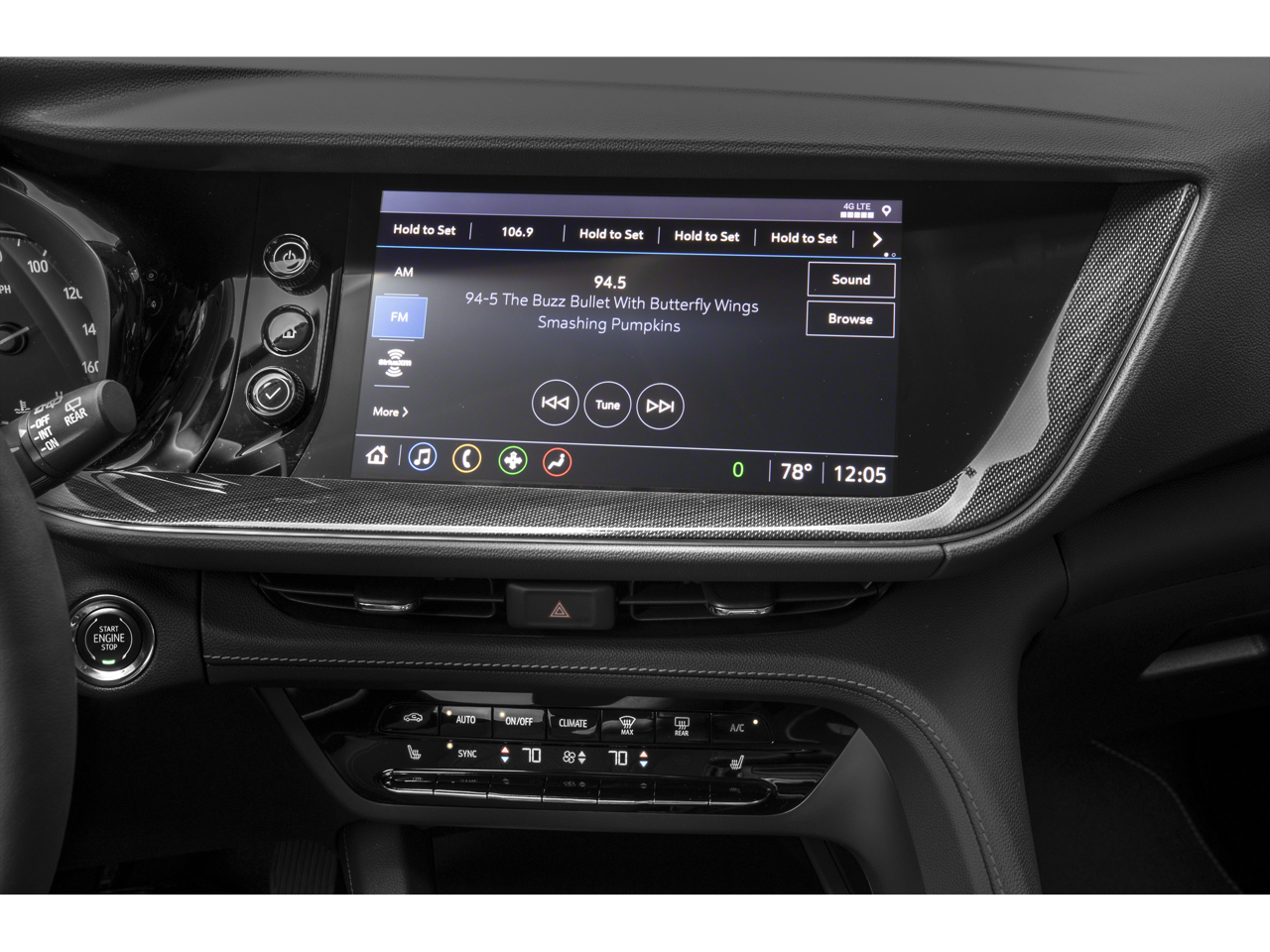 - Audio system, 10.2" diagonal Buick Infotainment System with Navigation includes multi-touch display, AM/FM/SiriusXM stereo, Bluetooth® streaming audio for music and most phones, Wireless Apple Carplay/Wireless Android Auto for compatible phones, advanced voice recognition, in-vehicle apps, personalized profiles for infotainment and vehicle settings. Includes greater memory